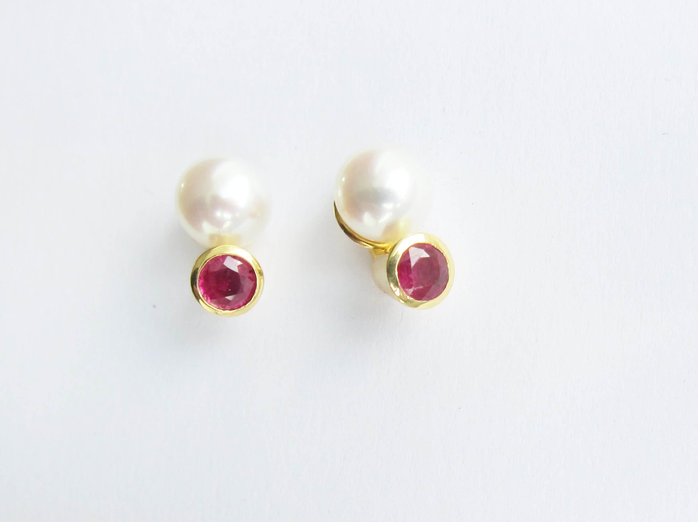 Verwendete Materialien: Gold 750/000 mit Perle und Rubin