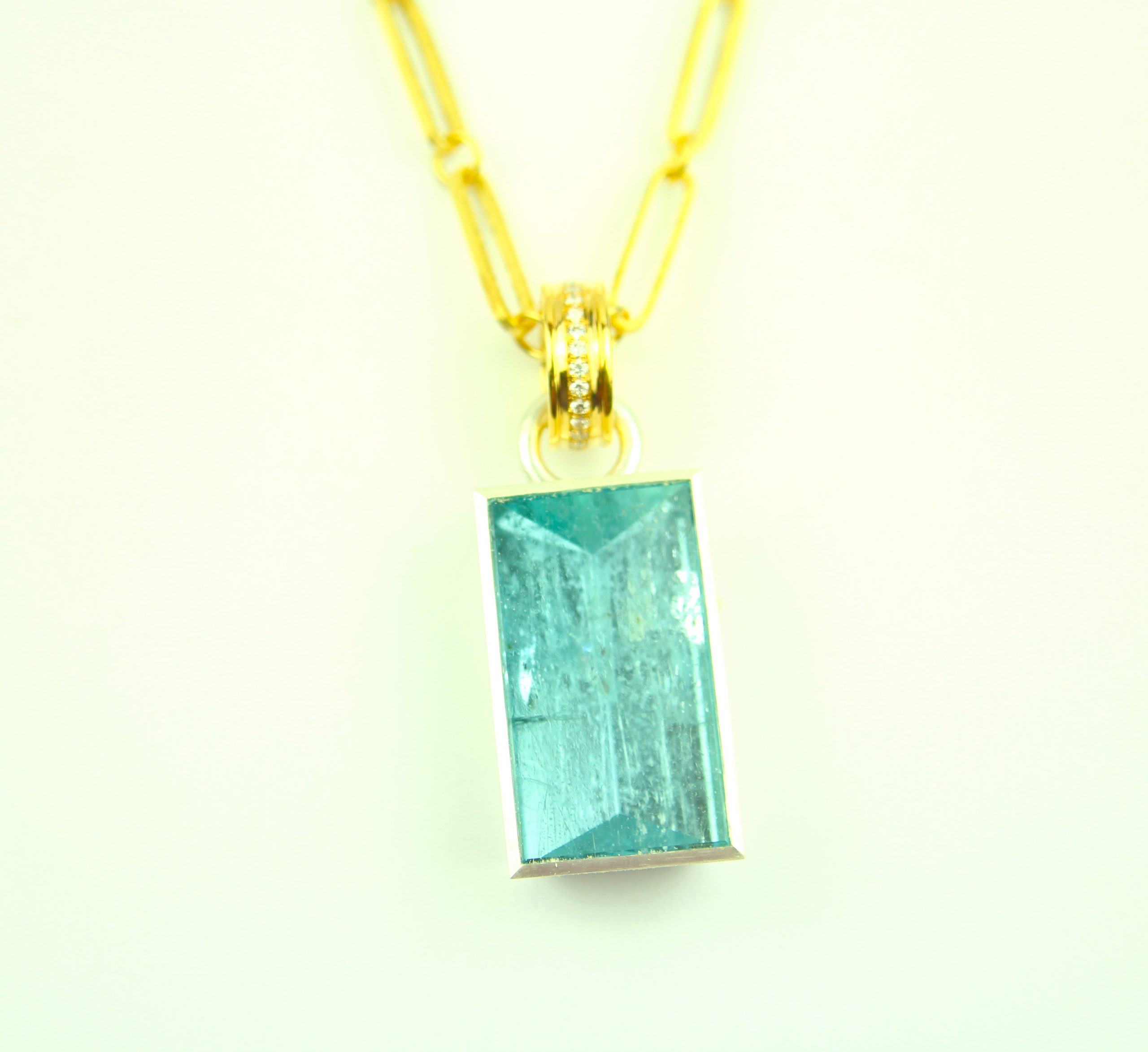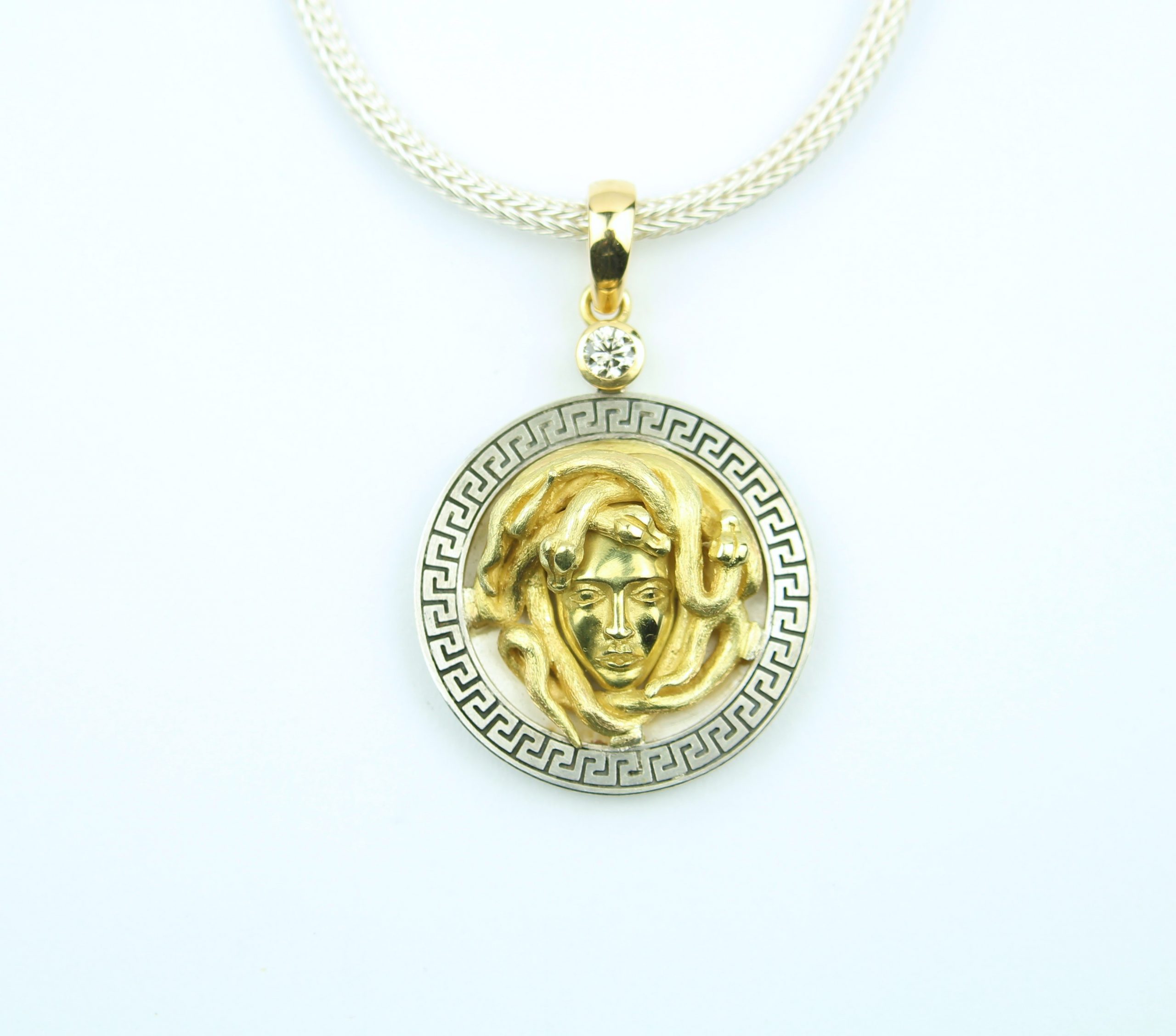 in Silber und Gold 750 mit Clip und Brillanten an handgefertigter Kette
