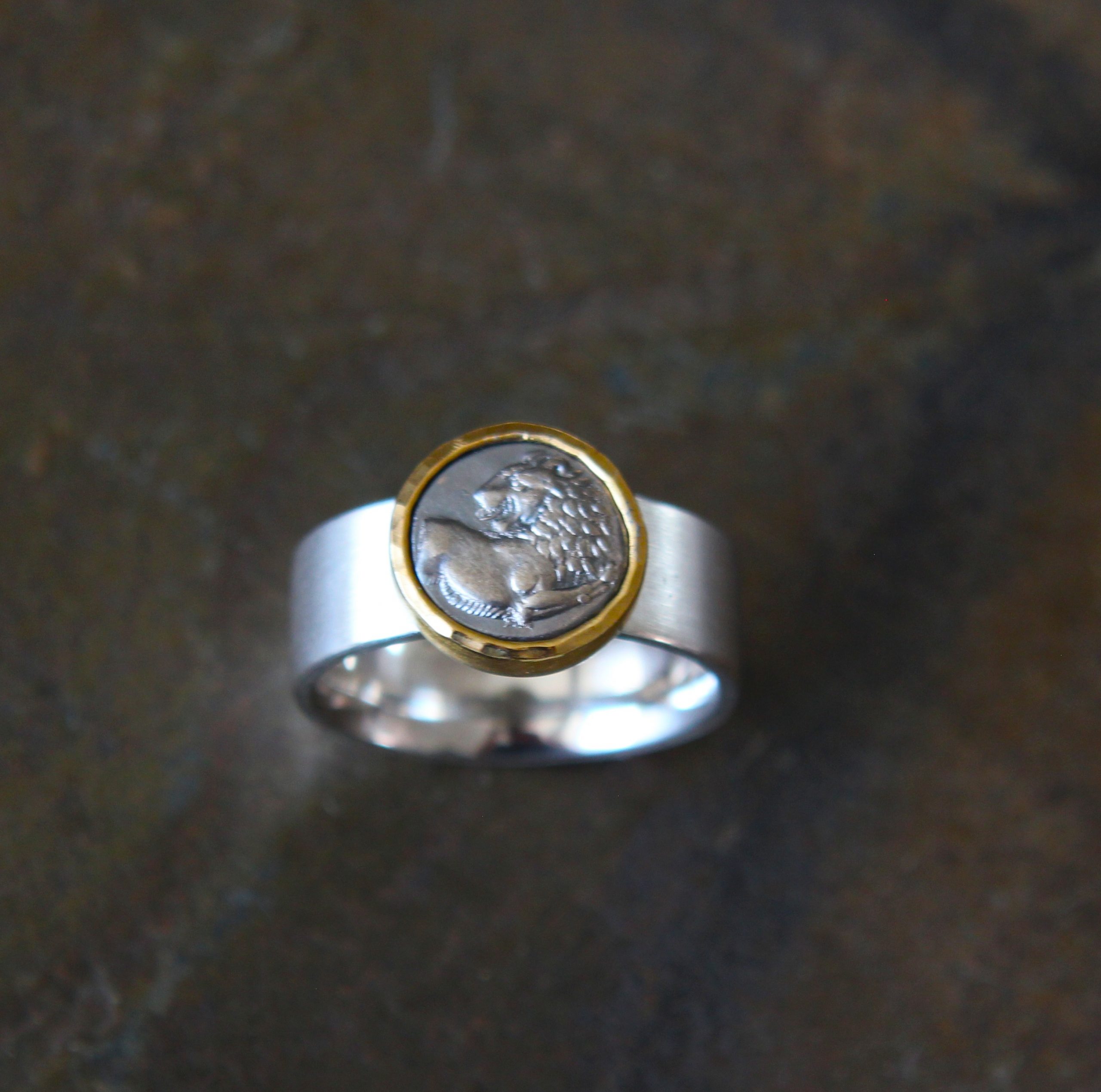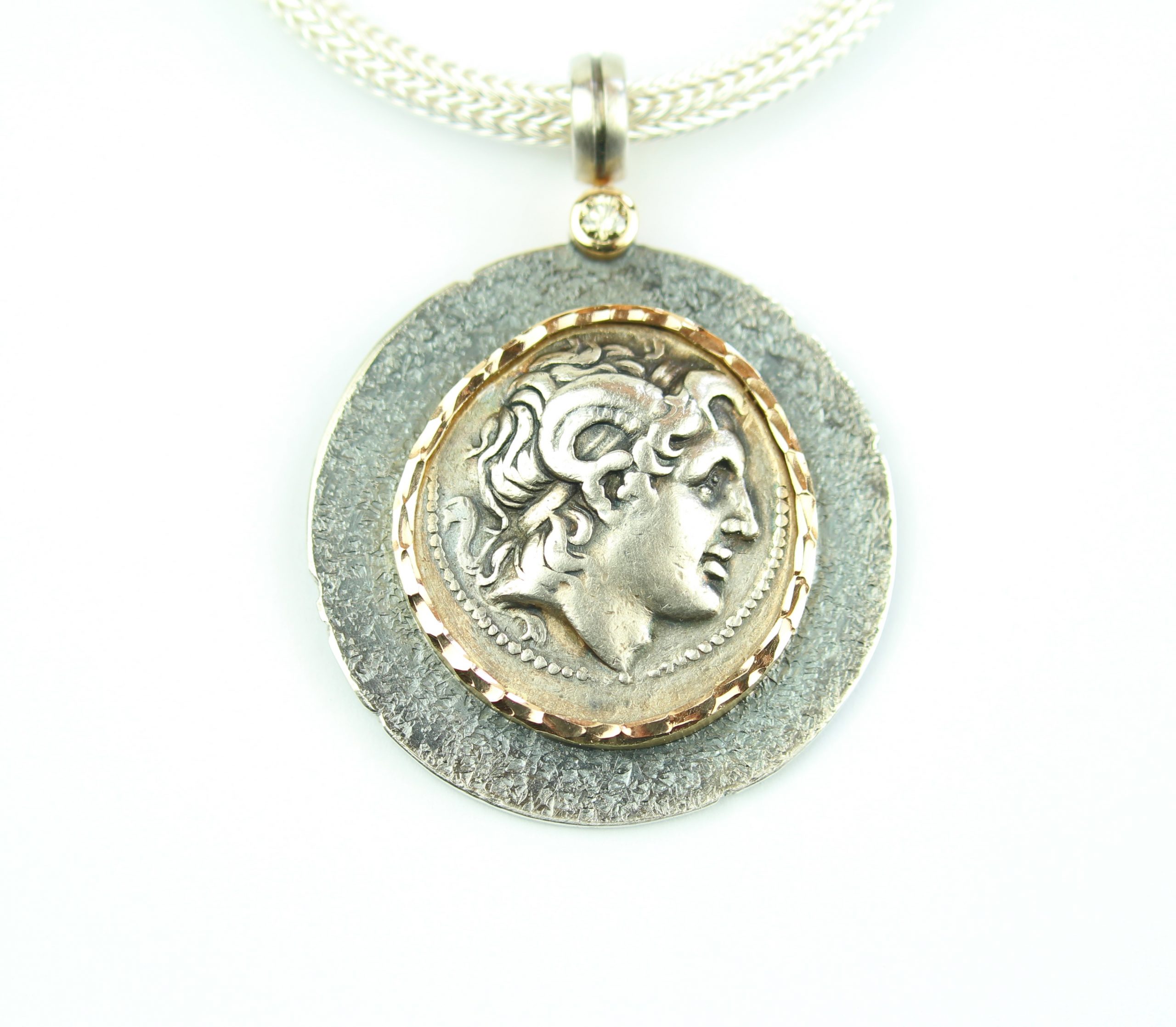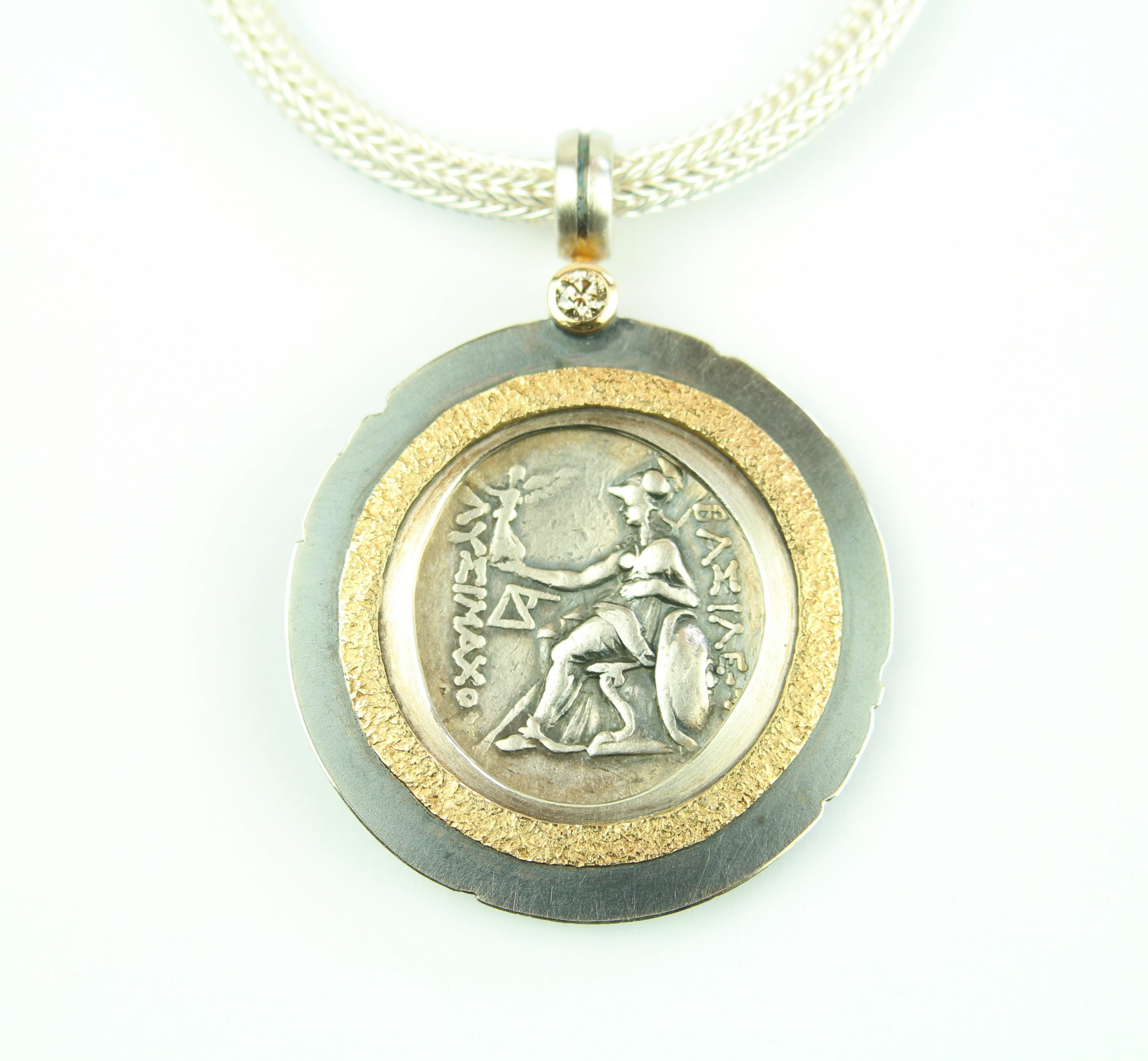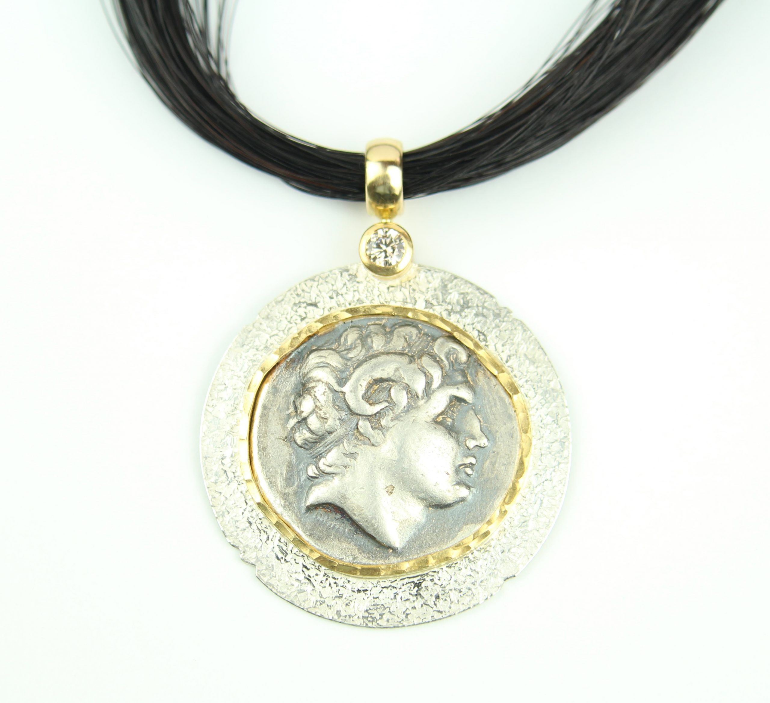 mit antiker Goldmünze in Weißgold 750 mit context cut Dia.