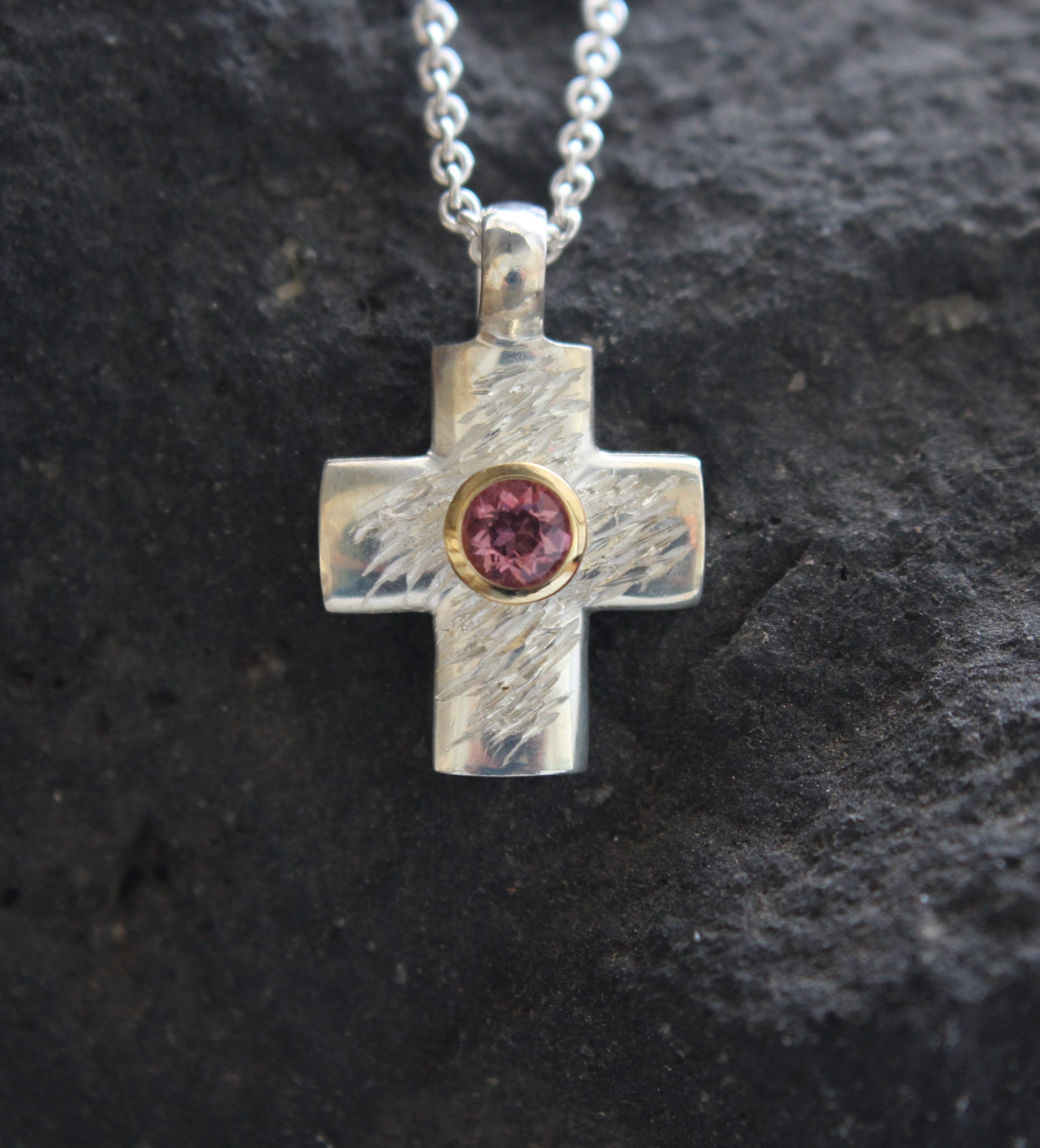 in Silber 925 mit pink Turmalin in Gold gefasst